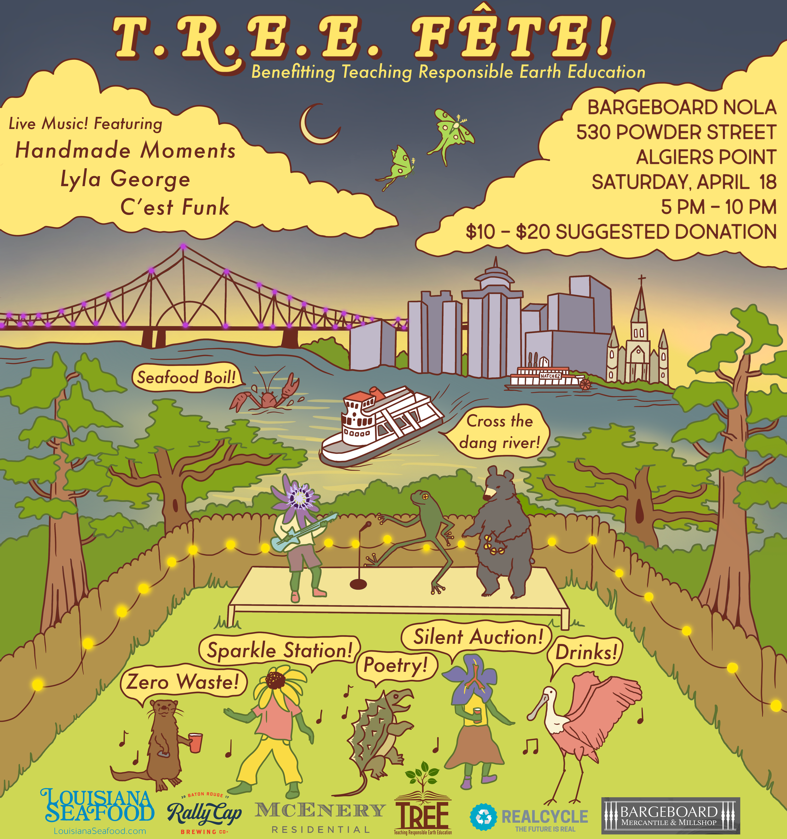 Live music and boiled crawfish take center stage at our 3rd annual T.R.E.E. Fête. Come celebrate 31 years of hands‑on science learning with us as we gather in community and raise support for the next generation of outdoor explorers.